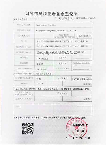 | ออกโดย: | Shenzhen Bao'an Registration Authority |