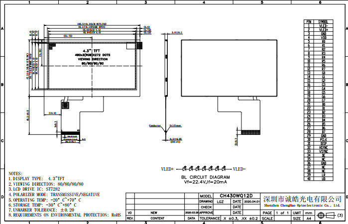 | ได้รับการรับรอง: | ROHS、ISO9001、CE | หมายเลขรุ่น: | CH430WQ12D |