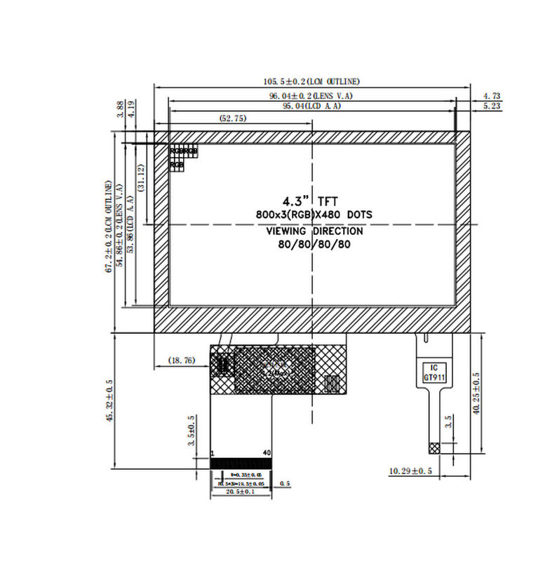 | ดูทิศทาง: | 80/80/80/80 | หมายเลขพิน FPC: | 40พิน |